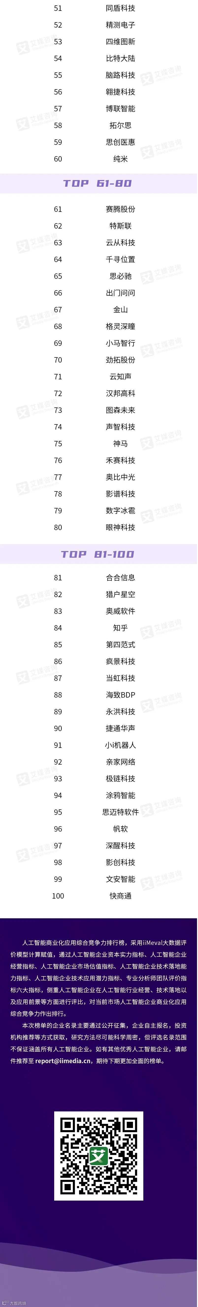 艾媒金榜最新发布了《2020中国人工智能商业化应用综合竞争力排行榜》,此榜单采用iiMeval大数据评价模型计算赋值,通过人工智能企业资本实力指标、人工智能企业经营指标、人工智能企业市场估值指标、人工智能企业技术落地能力指标、人工智能企业技术应用潜力指标、专业分析师团队评价指标这六大指标评选而出。