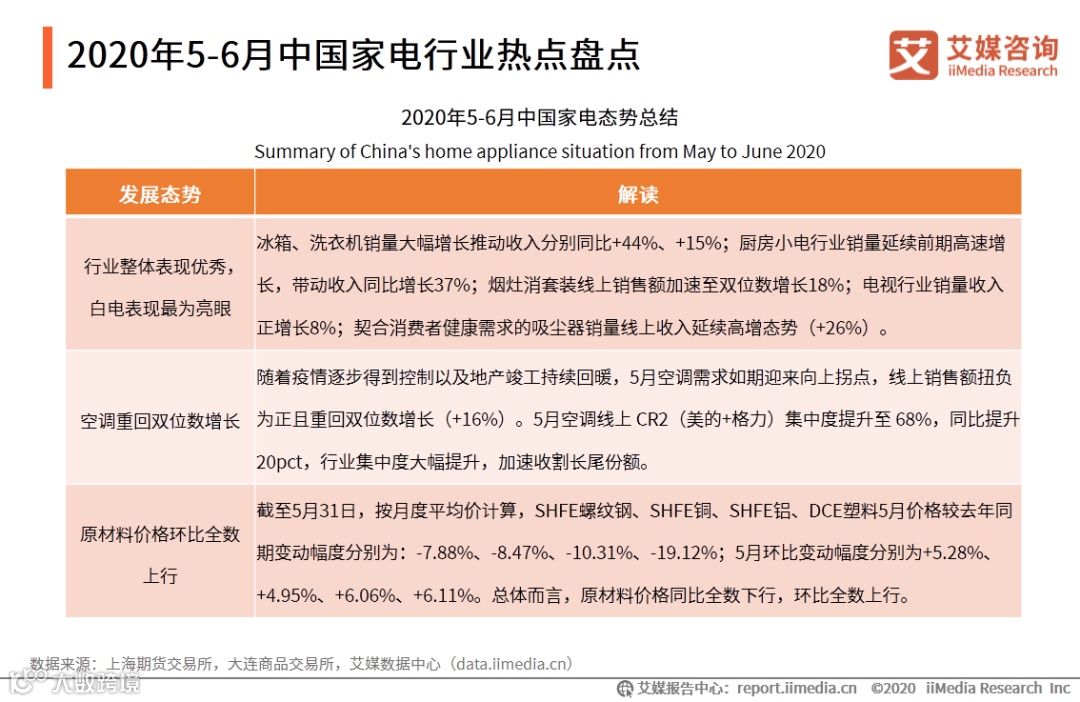 艾媒咨询|2020年5-6月中国家电行业市场运行及典型企业分析双月度报告 艾媒咨询