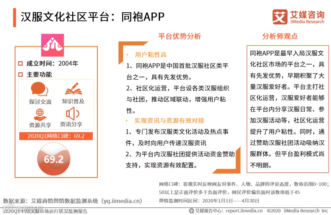以上内容源自艾媒咨询发布《2020Q1中国汉服市场运行状况监测报告》,完整版共43页;限于公众号篇幅,故仅摘部分数据和观点,如有兴趣深入,移步报告中心官网下载。