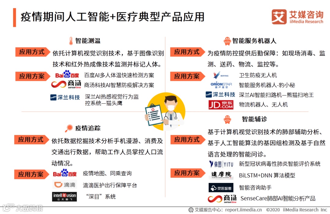 3. 疫情期间人工智能+医疗典型产品应用