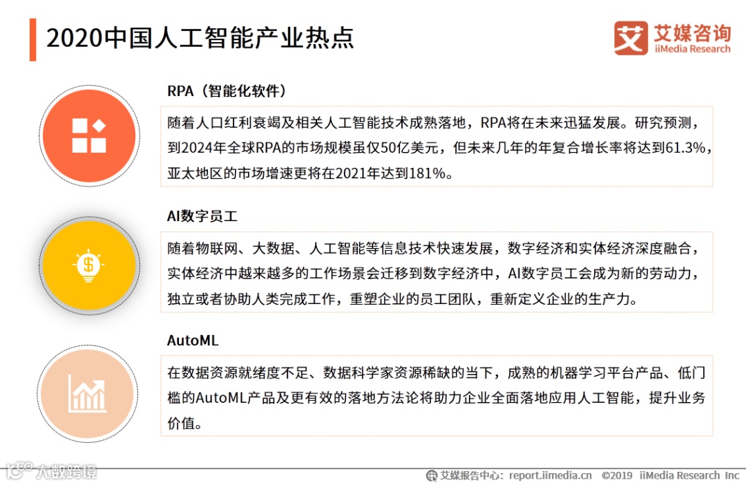 以上内容源自艾媒咨询发布《2020上半年中国人工智能产业专题研究报告》,完整版共61页;限于公众号篇幅,故仅摘部分数据和观点,如有兴趣深入,移步报告中心官网下载。