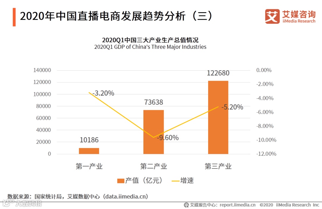 受疫情影响,2020Q1中国经济与2019Q1的相比,剔除物价变动因素后,同比实际下降了6.8%,可能会影响中国经济全年增速放缓。为了应对疫情影响经济发展的问题,国家积极鼓励社会各方开发“新工具”来激发市场活力,艾媒咨询分析师认为,这一政策对直播电商是新的利好,而目前直播电商展现的带货能力也将进一步拉动更多行业入局。