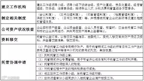 所谓“托管重组”,是指当标的企业(委托企业,被托管企业)出现重大危机(通常表现为财务危机)时,另一企业作为受托企业(托管人),以恢复、维护、改善标的企业的管理运营为目标,有偿受托经营和管理标的企业的资产,通过协调、平衡标的企业、标的企业的债权人、标的企业股东、重组方等各方权益,利用多种手段有序处置标的企业资产、对标的企业进行债务、资产重组,化解标的企业债务危机,促进委托人资产的保值增值。