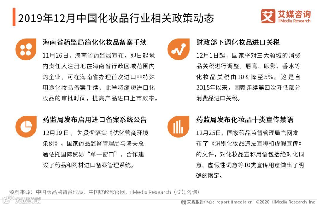以上内容节选自艾媒研究院发布的《2019年12月中国化妆品行业月度运行监测报告》