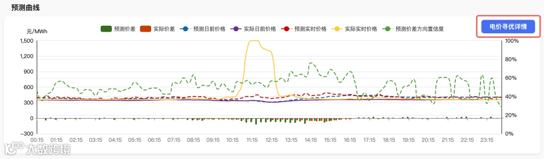 曲线和表格的对比能够直观展示 “历史相似场景下电价走势”,辅助判断当日电价可能的波动规律,有效降低决策不确定性。