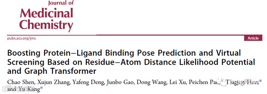Chao Shen, Xujun Zhang, Yafeng Deng, Junbo Gao, Dong Wang, Lei Xu, Peichen Pan, Tingjun Hou, Yu Kang, Boosting Protein−Ligand Binding Pose Prediction and Virtual Screening Based on Residue−Atom Distance Likelihood Potential and Graph Transformer, J Med Chem, 2022, DOI: 10.1021/acs.jmedchem.2c00991.