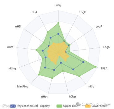 候选分子的成药性对整个新药开发具有非常重要的意义,在药物研发早期开展化合物吸收、分布、代谢、排泄和毒性(ADMET)的预测评估有助于及早排除成药性不好的分子,进而有效降低临床阶段实验失败的风险。依托自主研发的DrugFlow软件平台,碳硅智慧目前支持对76种物化性质、5种药化性质、21种成药性参数、27种毒性性质的系统性评价。