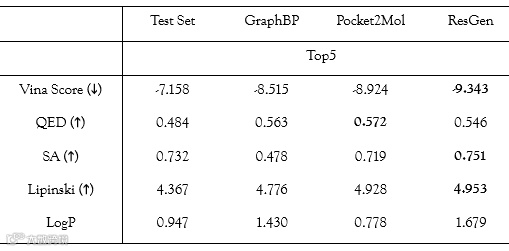 表1:CrossDock测试集上的Top5分子性质