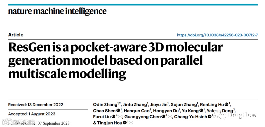 Zhang, O., et al. ResGen is a pocket-aware 3D molecular generation model based on parallel multiscale modelling. Nature Mach Intell (2023)
