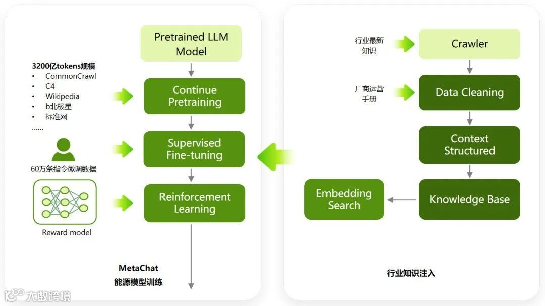 在训练数据上: 使用约3200亿tokens的高质量数据,针对能源双碳领域进行增强预训练,具备行业特征性;