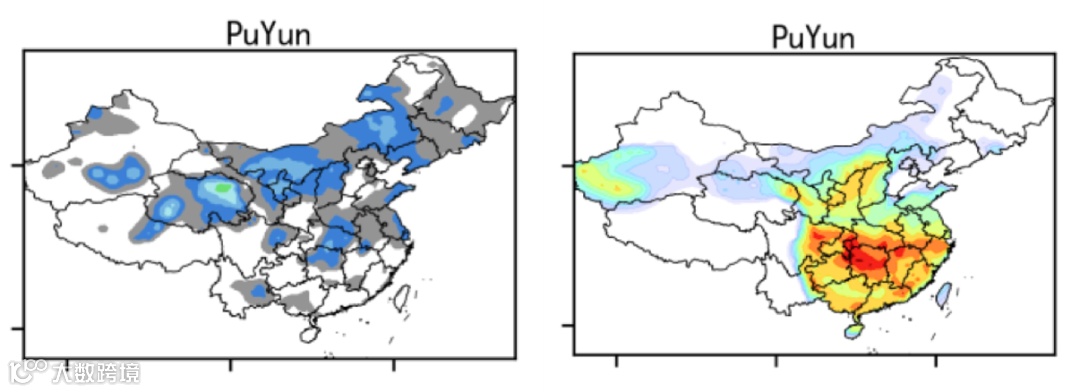 具体而言:从整体空间相关来看,璞云预报的风速分布与观测最为接近,相关系数达0.876,且其预报的该时刻6级以上平均风预报准确率为0.303;温度预报结果的相关系数达0.935,综合来看在分布和极端性上预报效果均较好。这为相关区域提前应对极端天气、保障能源供应稳定提供了精准的科技支撑。