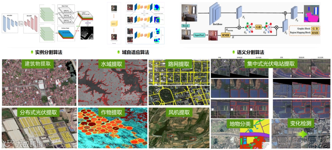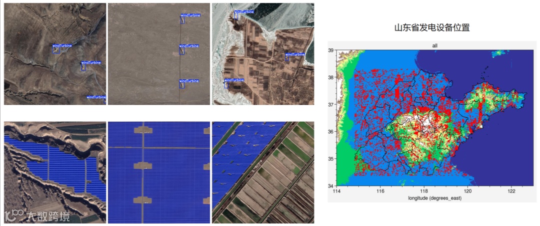 基于多源遥感影像,提出改进的图像分割算法,通过影像质量增强、域自适应等AI算法,实现高准召的目标识别与变化检测,可高效快速、大面积、准确提取风机、集中式光伏、分布式光伏等新能源发电目标。