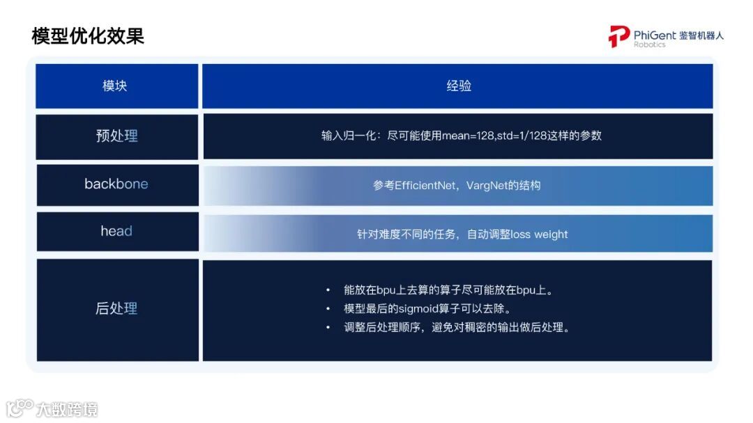 后处理:能放在bpu算的算子尽可能放在bpu上;模型最后的sigmoid算子可以去除;调整后处理顺序,避免对稠密的输出做后处理等。