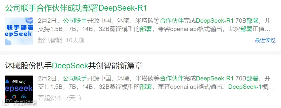 在这场技术革命中,米塔碳科技携手超讯通信、开源中国、沐曦等战略伙伴,于春节期间完成DeepSeek-R1 70B全栈技术攻坚,同步实现1.5B至32B蒸馏模型矩阵部署,兼容openai api格式输出,标志着国产大模型实现里程碑式突破。