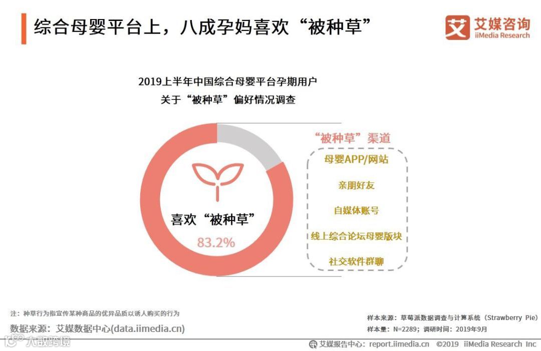 iiMedia Research(艾媒咨询)数据显示,83.2%的受访综合母婴平台孕期用户表示喜欢“被种草”。