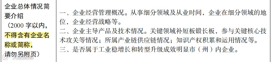 关于“企业总体情况简要介绍”,强调“不得出现企业名称或简介”。