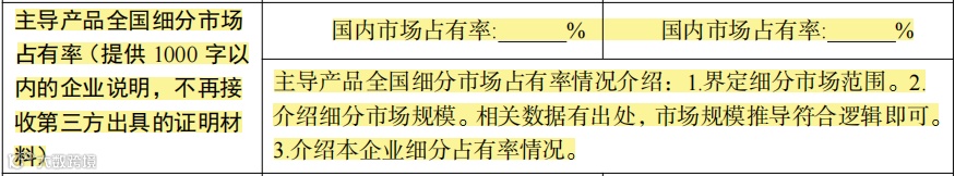 相比2023年要求,行业领军企业栏从“八、主导产品所属领域”改到“七、产业链配套”。
