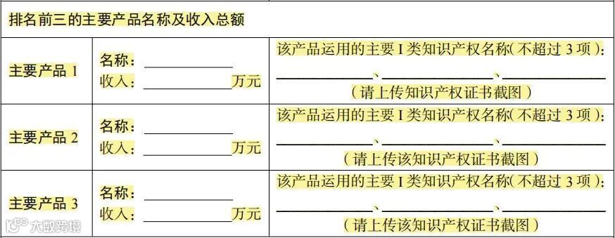 增加了“排名前三的主要产品”内容,包含排名前三的主要产品名称、收入、I类知识产权名称。