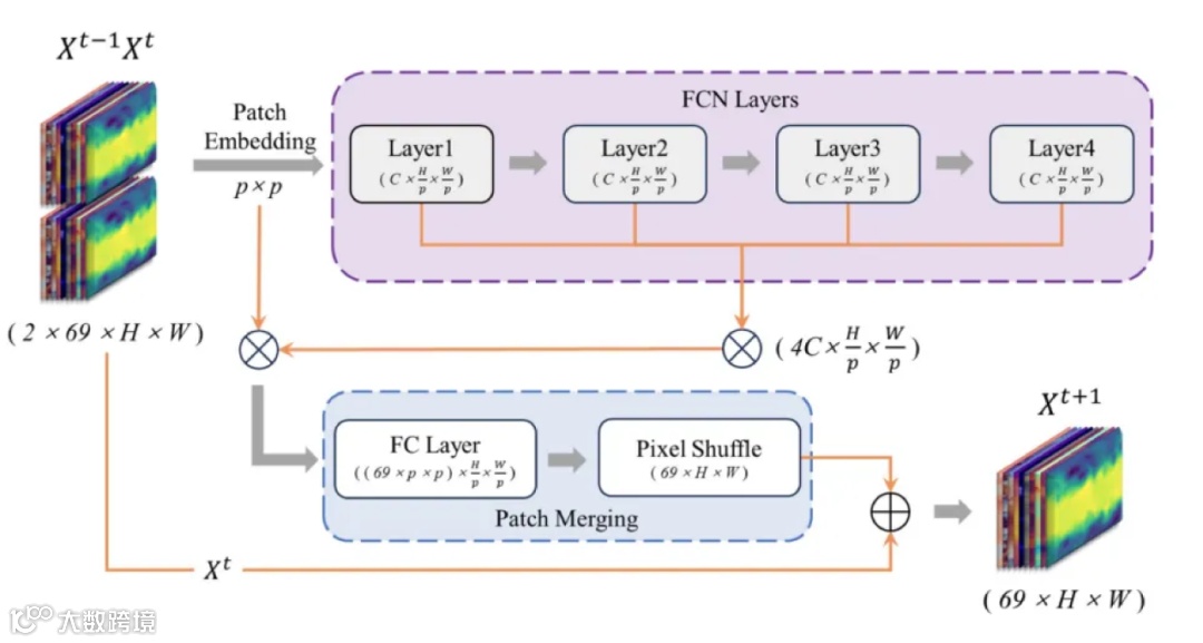 璞云创新的使用了LKA FCN的方式,将卷积网络再次带回到时序预测,大核卷积不仅可以模仿自注意力机制,同时使用卷积来提取相邻区域的气象变化过程,同时还可以进行任意分辨率的预测。
