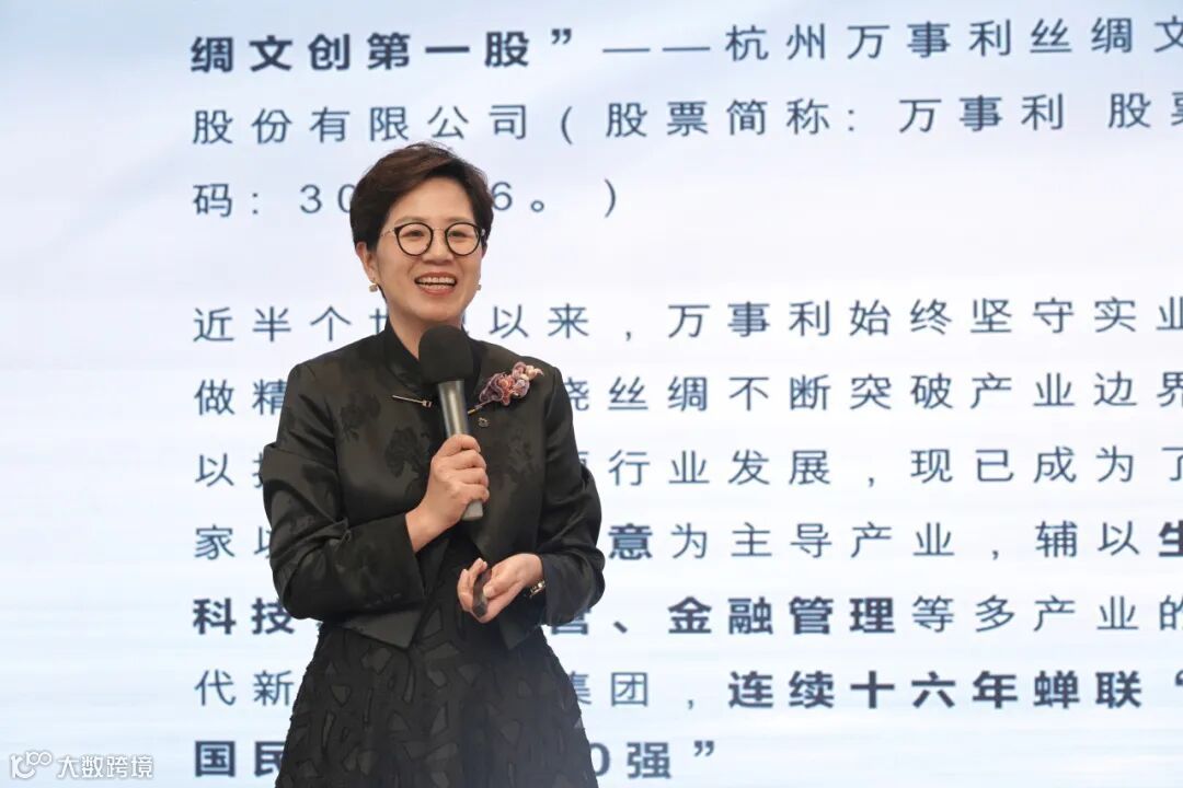 屠红燕会长介绍了近年来万事利以科技为核、文化为根、实业为本、品牌为市场构建起的高质量发展支撑体系,并重点分享了亚运期间,万事利如何通过清晰的战略定位、团队的高执行力将中国丝绸文化和现代科技融合,和时尚设计融合,用高品质的产品、智能化的消费体验、多样化的丝绸表达给世界呈现了一份别样精彩,从而让万事利品牌实现了一次新的飞跃。