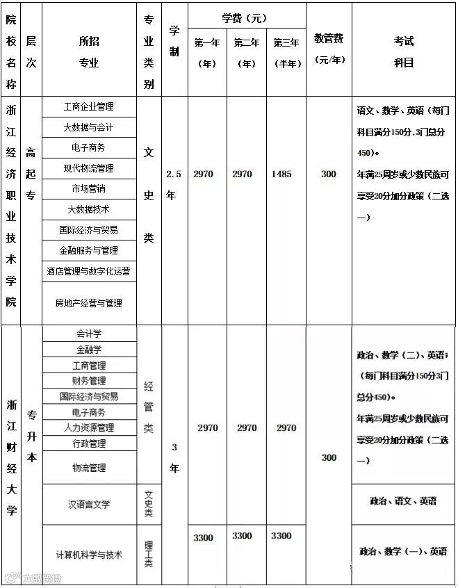 (2)专升本报考条件:具有专科及以上毕业文化程度或同等学力(学信网可查询);浙江省户籍或者省内社保缴纳或者省内居住证,三选一。