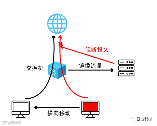 当前业务流量大,传统基于镜像流量方式无法管控违规终端横向访问,要求采用非流量镜像的方式,构建“东西向”链路层管控效果。