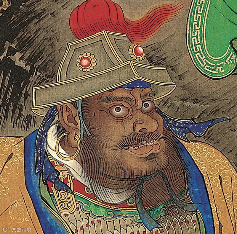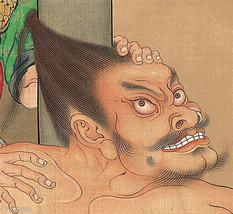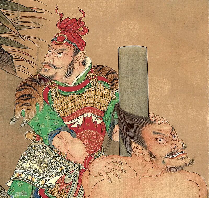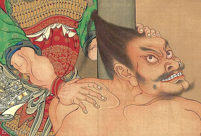 尽管在画中关羽作为正面形象,但对败将庞德并未加以丑化,他的形象与神态更容易感染观者,因为在着笔传神之处并不亚于关羽。