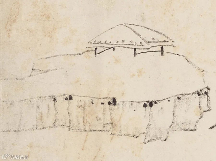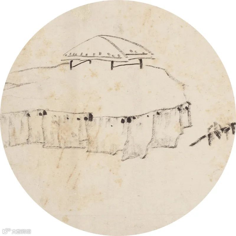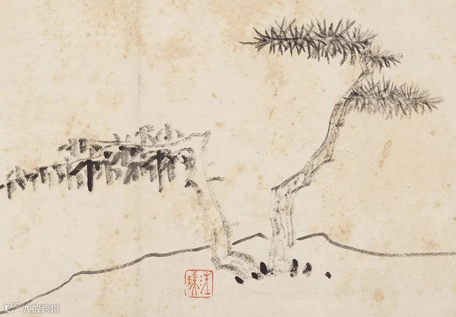 汪之瑞的山水画大抵皆能如此。他的画最突出的特点是用笔极简,主要以线表现,没有大片的墨,也没有密线皴擦。简洁到用一根线表现一个境地,又决不因线少而使境陋。此图的坡岸,就是一根线,水中的石洲也只有几根线。他用线的技巧极高,分圆方两种笔法。
