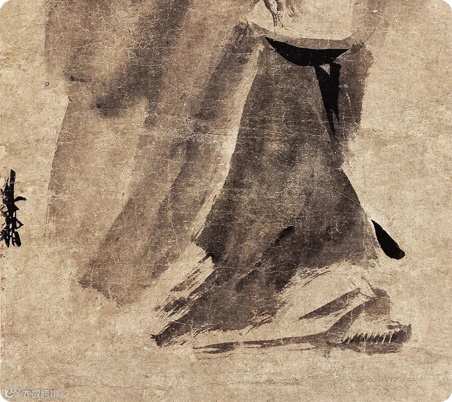 梁楷之所以能在表现技法和艺术风格上大胆变格,是有多方面原因的。除了当时审美情趣和绘画观念的发展变化、绘画工具材料的不断改进,以及人物画经唐宋、五代的发展在技法上积累丰富等客观因素外,更重要的是画家在主观上能敏锐地感悟到时代的脉动一一人的自我发现,体察到审美情趣和绘画观念的变迁,汲取前人的成就,寄强烈奔放的情感于笔端。