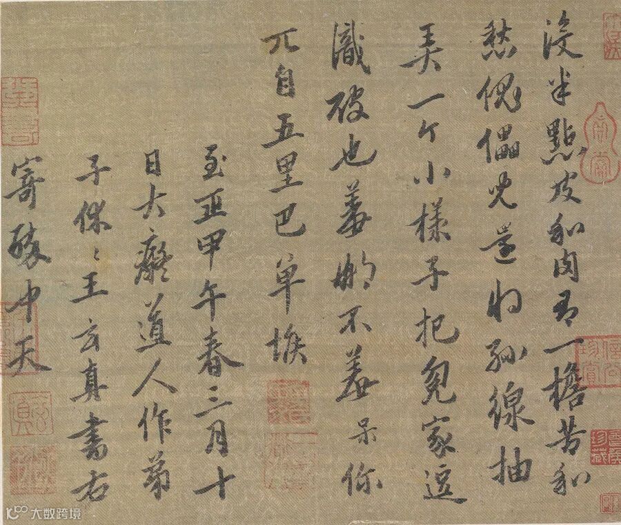 曲末题署:至正甲午春三月十日大痴道人作,弟子休休王玄真书,右寄醉中天。