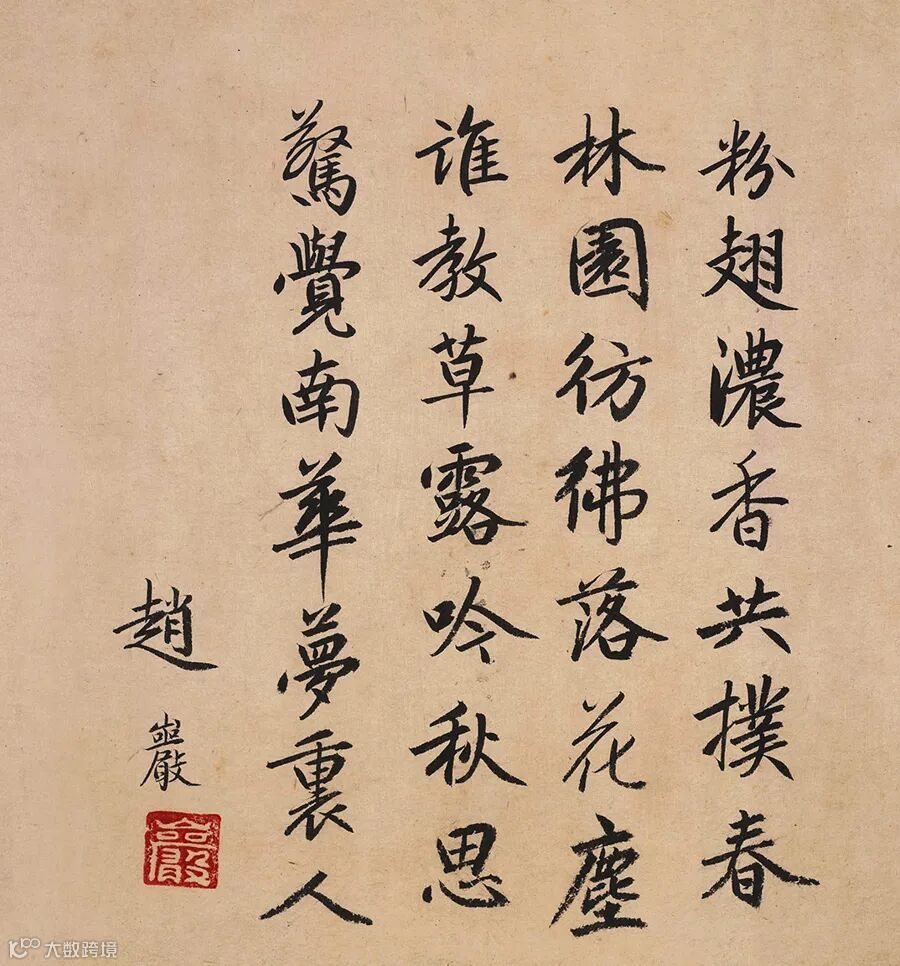 作品用笔遒劲,设色清丽典雅,是一种清劲秀逸的风格。和画史上说赵昌“专尚设色”、“笔迹柔美”的画格,不尽符合。所以有人怀疑不是他的作品。但在艺术上,它确实是一幅有独特风貌的优秀之作。