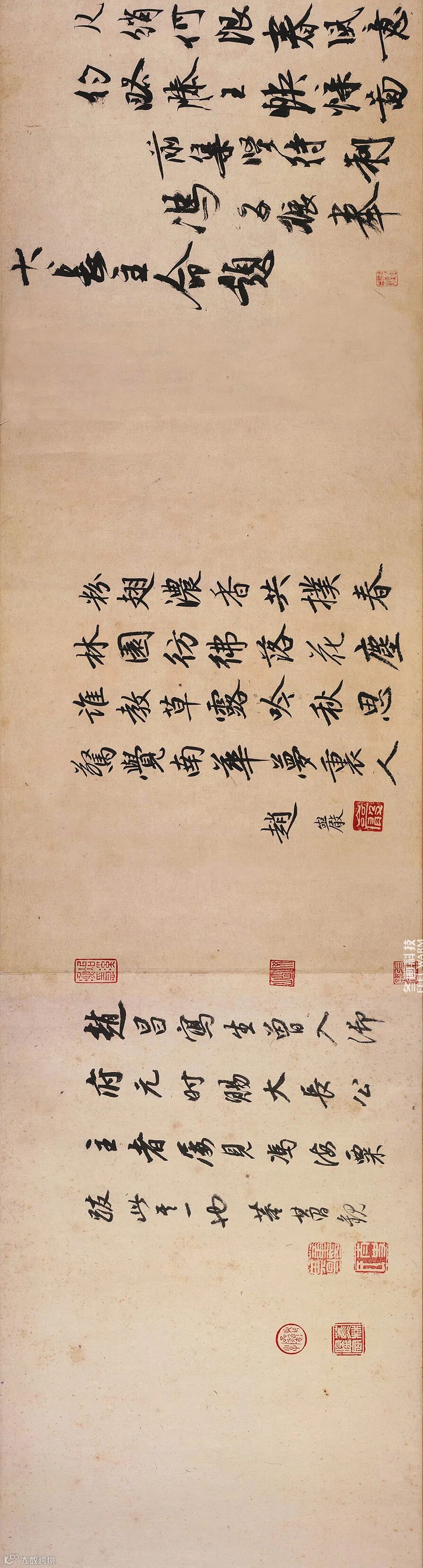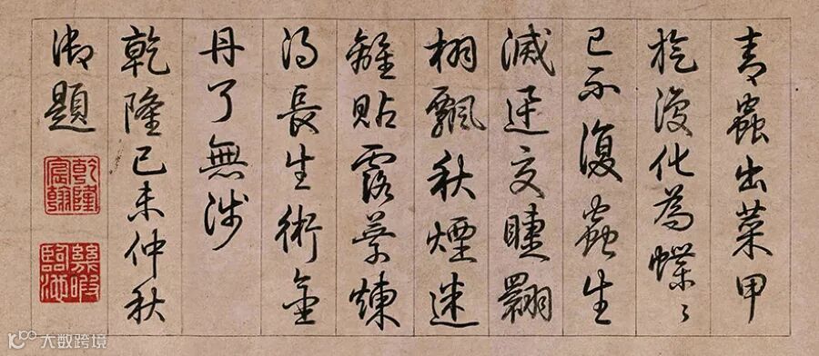画卷上无作者款印。尾纸处有元代冯子振、赵岩题诗,明代董其昌题跋及清代乾隆帝御题诗一首。