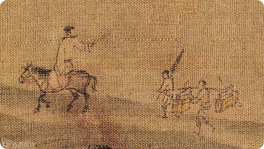 这是一幅清润淡雅的西湖小景。画面下角的长堤之上,两个书僮肩挑行囊、怀抱古琴,跟在一骑之后;一个书生骑驴挥扬手中短鞭,指点西湖景致,似乎口中吟哦有声,好不悠哉。