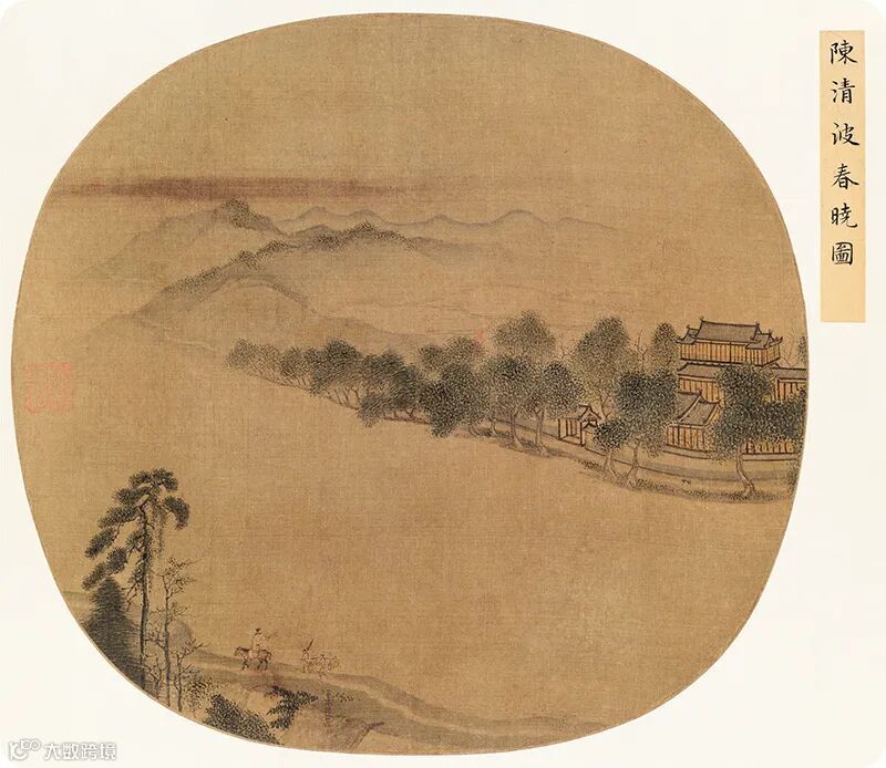 蜿蜒相连的湖山将观者视线拉向远方,水天之际一抹远山隐于清晓雾霭中,将画中人物和画外读者的诗思引向无限幽远。小品的意境贵在一个“味”字,看上去如一杯清茶,细品起来余味无穷。