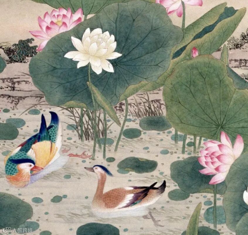 —清·沈铨《荷塘鸳鸯图》冬暖画