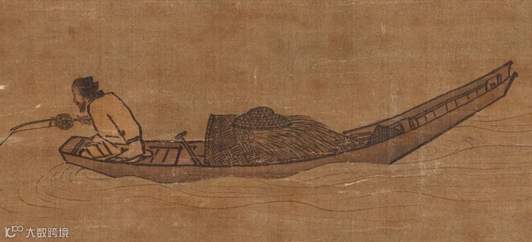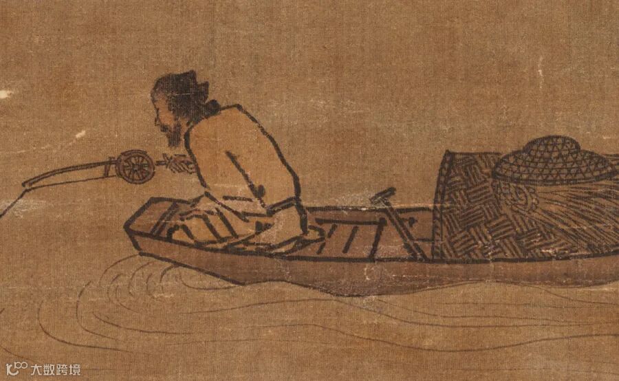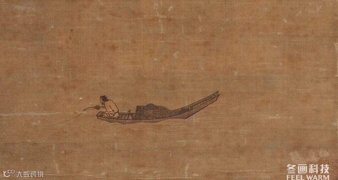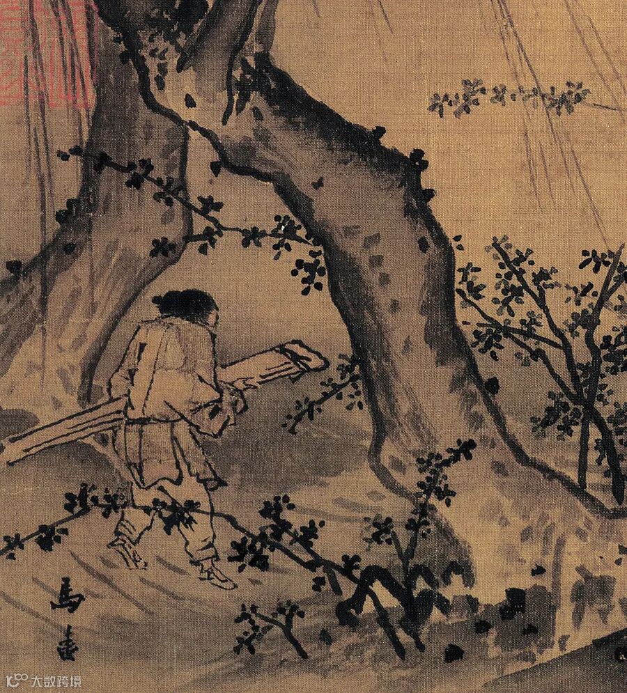在构图处理上,运用大片空白表现水天一色,开拓了画面的空间,给欣赏者留下自由想象的余地。善於运用空白是马远山水画的一大特色,也是中国画构图的一个重要特征。