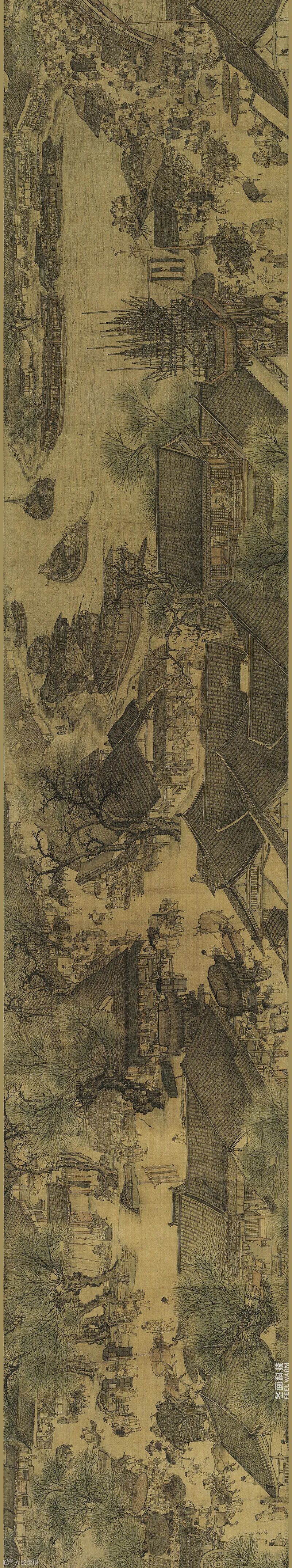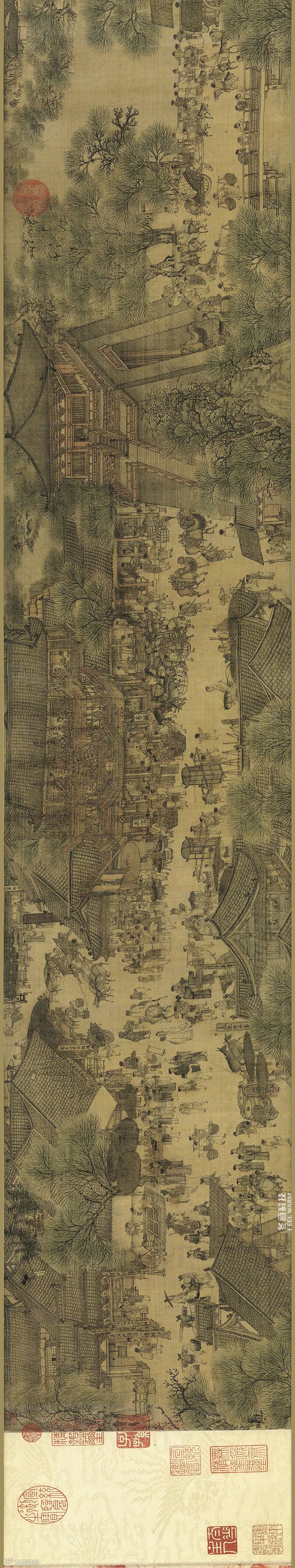 而贯穿全曲的主题,则是对承平时期汴梁生活的赞美和怀念。今天我们可以从中窥见豪奢闲散和贫困辛劳的对比,这更显出画家写实艺术的伟大。