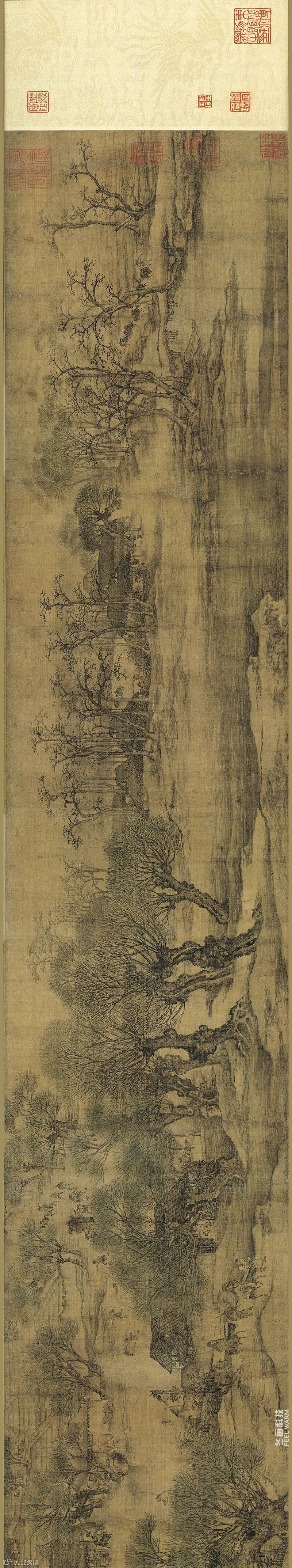 建炎以后,在怀有故国禾黍之思的南渡臣民眼中,这幅图卷自有它特殊的意义。当时南宋首都临安(杭州)的杂卖铺中,已有画院画家摹作的复制品,每卷售价银一两。