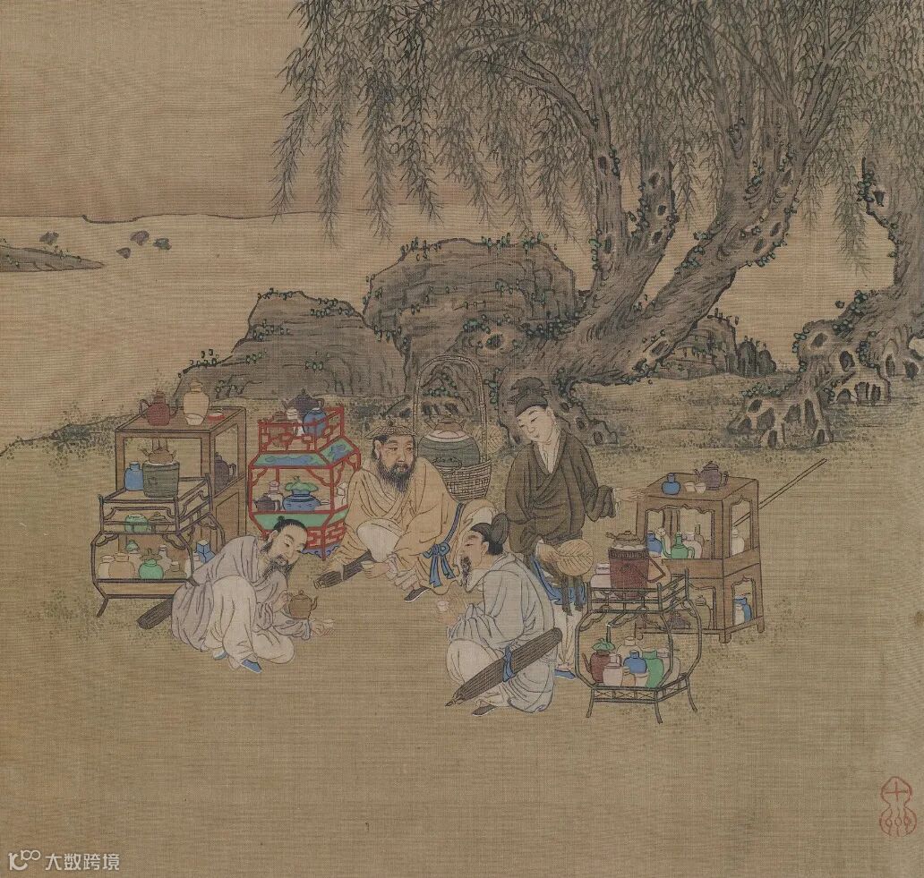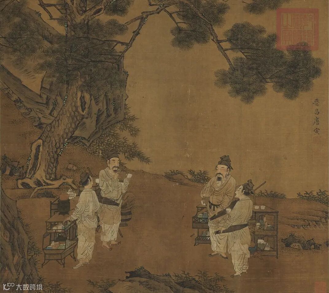 《斗茶图》轴,明,唐寅(传),立轴,绢本,设色,纵56.4厘米,横61.8厘米,台北故宫博物院藏。