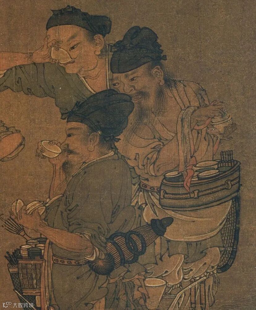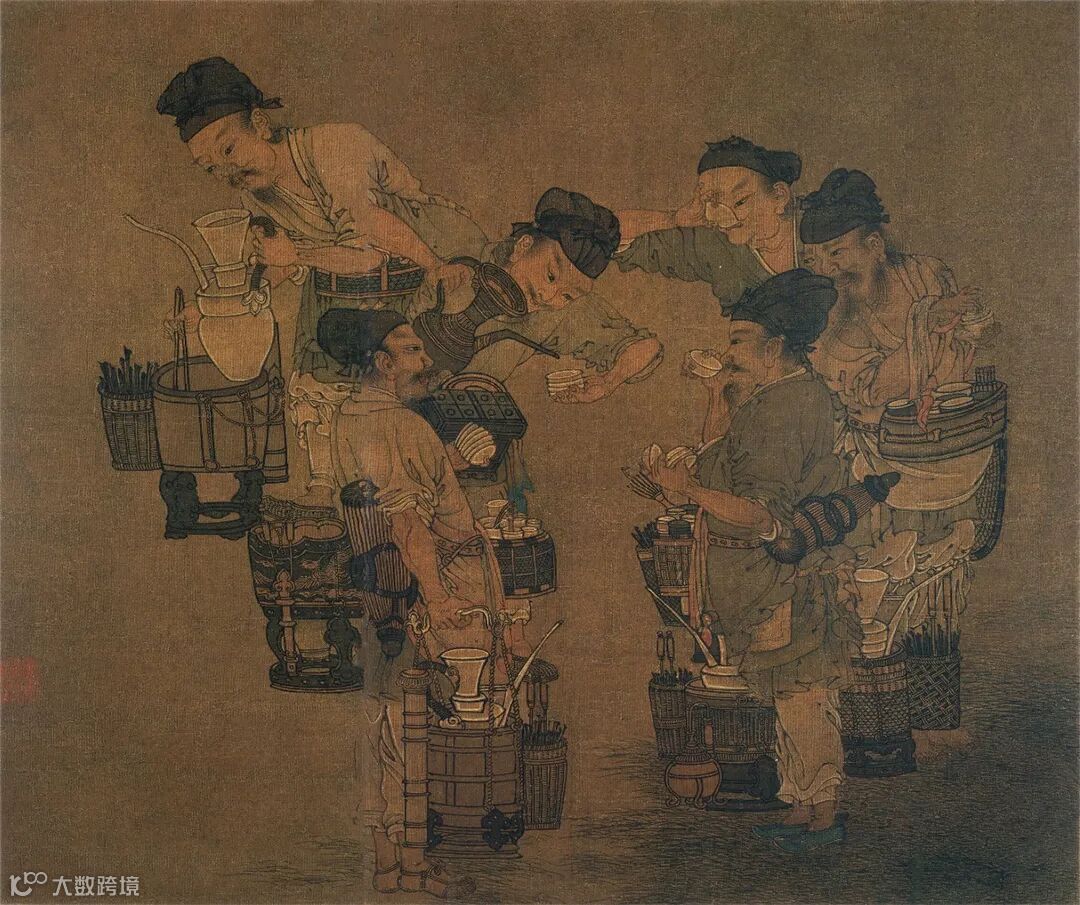 据《东京梦华录》所记载,斗茶的小贩,在宋代被称为“提瓶茶人”,他们经常在街头提瓶卖茶,甚至到三更半夜都有在卖的,“上夜班”的人路过,都会习惯买一碗热茶喝。