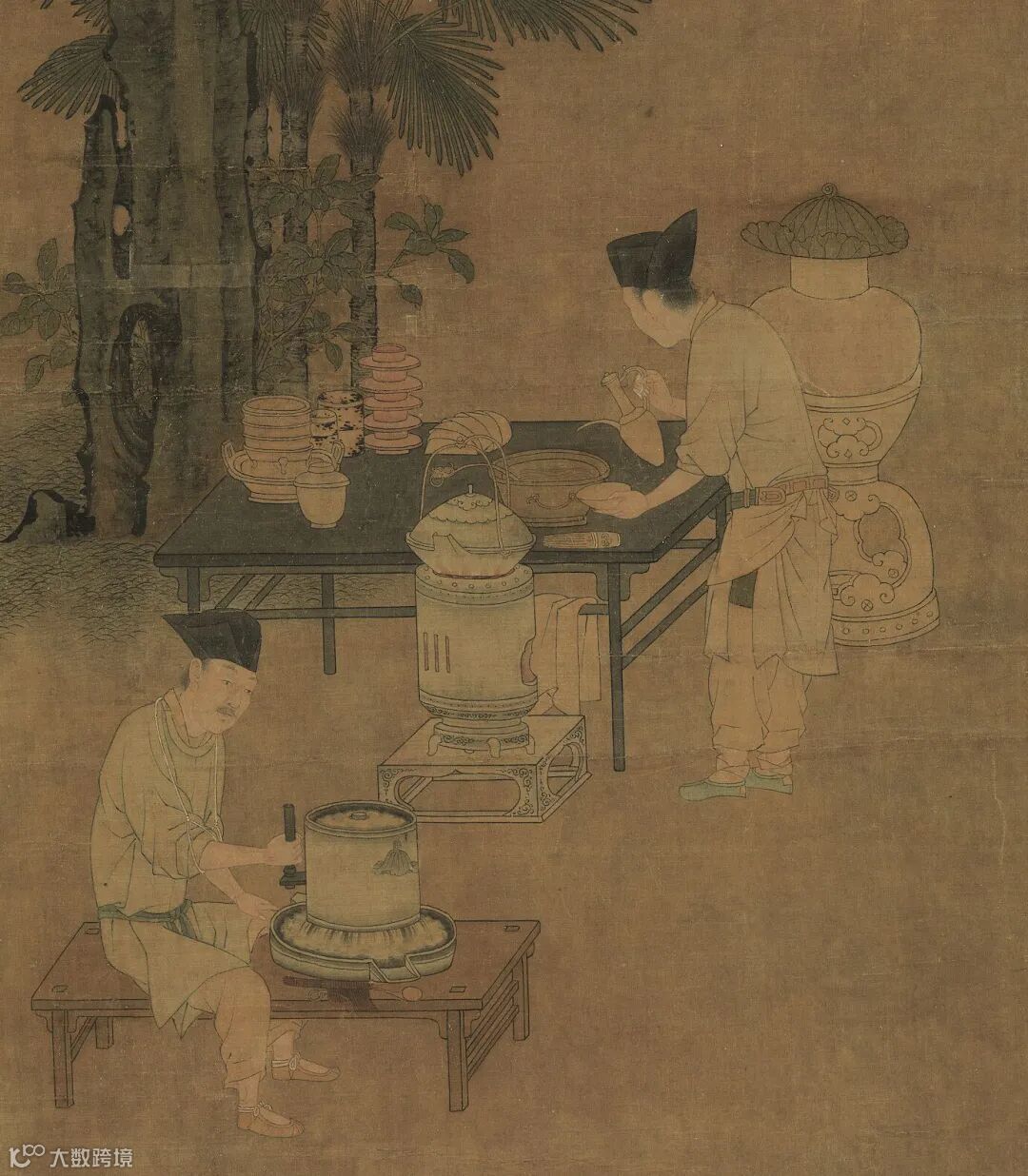 《撵茶图》轴,南宋,刘松年,绢本,设色,纵44.2厘米,横61.9厘米,台北故宫博物院藏。