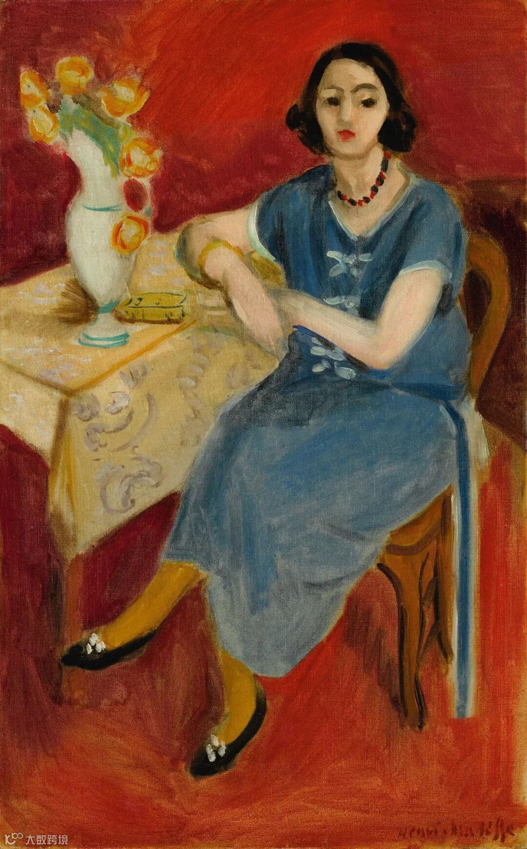 法 亨利 · 马蒂斯《桌旁的蓝衣女子》
