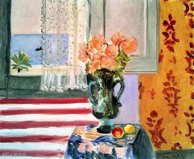 从绘画的逻辑来看,窗户在空间上分割了室外室内,有利于冷暖色调的切换和互补,让马蒂斯的多彩顺理成章。