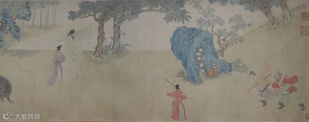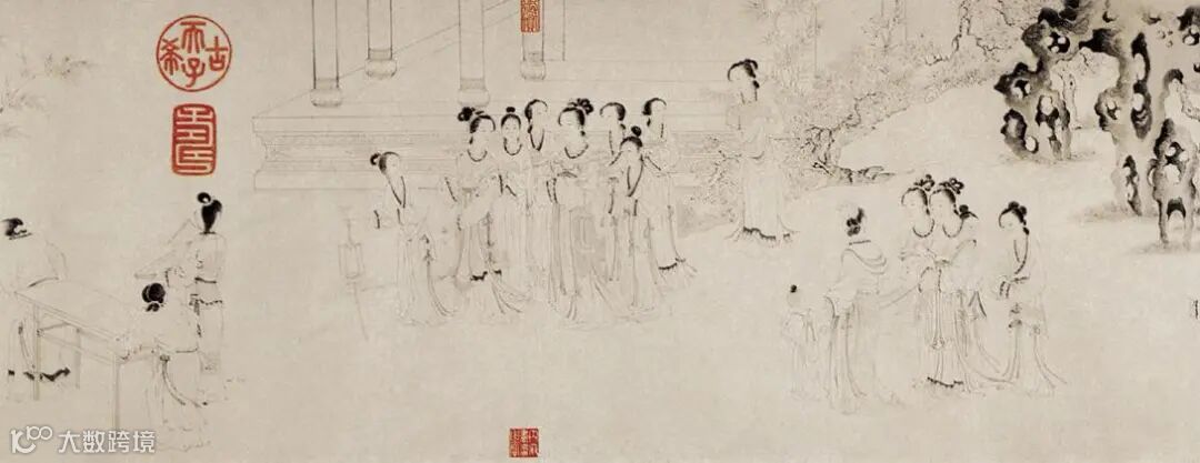 乾隆十三年,丁观鹏作《乞巧图》卷,现藏于上海博物馆。