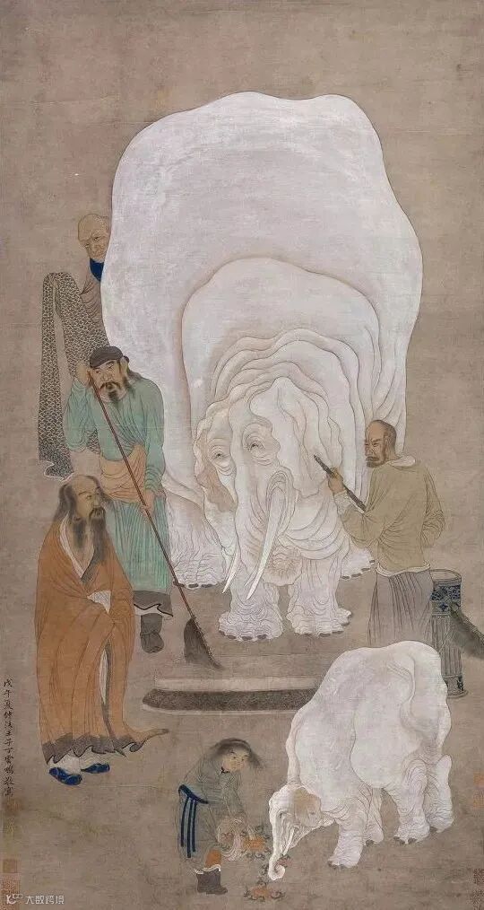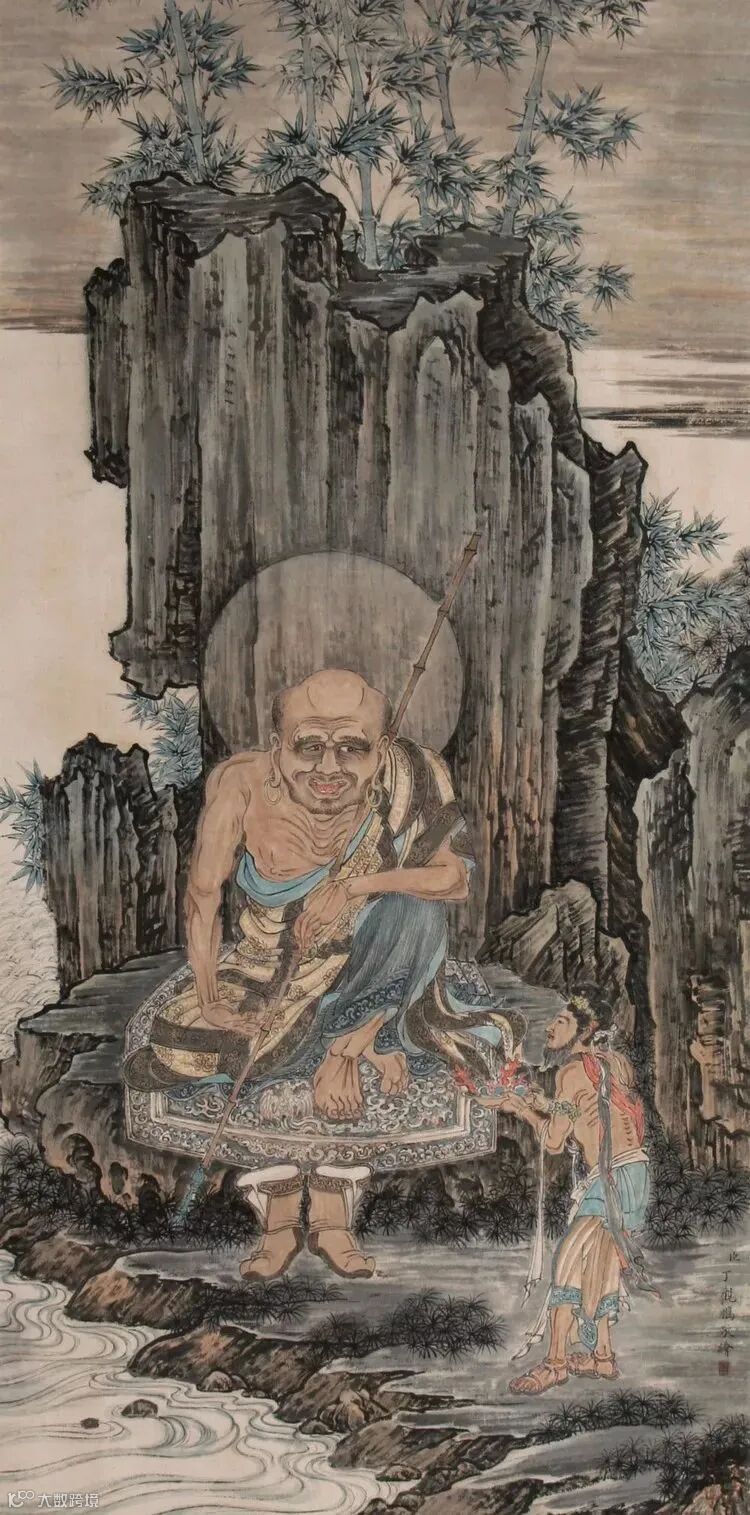 丁观鹏工道释、人物,尤擅仙佛、神像,以宋人为法,不尚奇诡,学明代的丁云鹏笔法,有出蓝之誉。