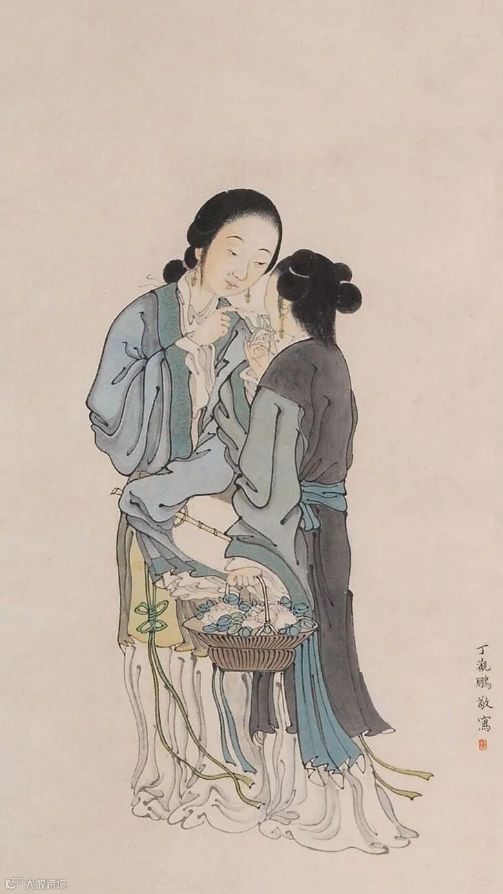 其弟丁观鹤,亦供奉内廷,工人物。胡敬《国朝院画录》谓:“观鹏克传家学”。