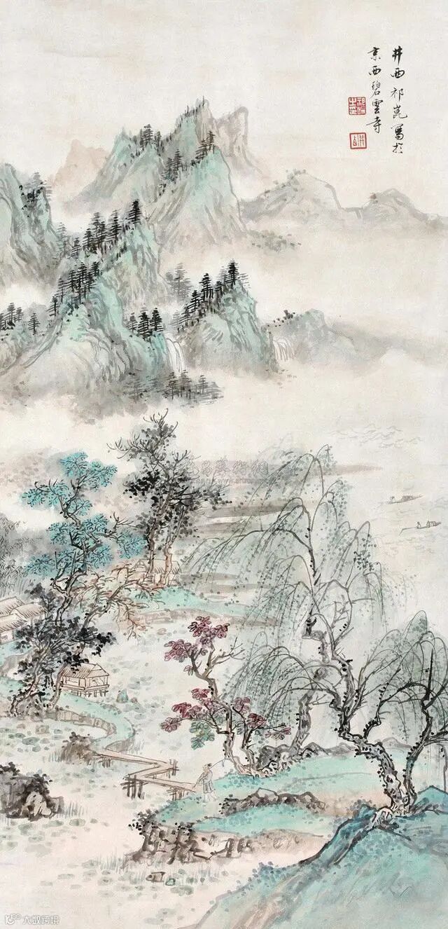 一幅《金碧青绿山水》,