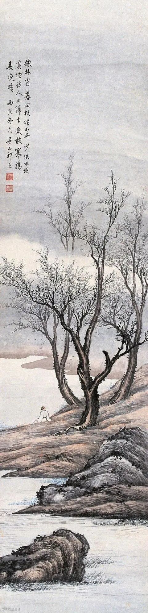 天下至大至刚之正气孕育于山川河流,万物之间要修养到天地与我并生万物与我为一的境界。画家必需安贫乐道,有贫贱不移,威武不屈的人品,过着隐逸清高、淡泊自安的生活。