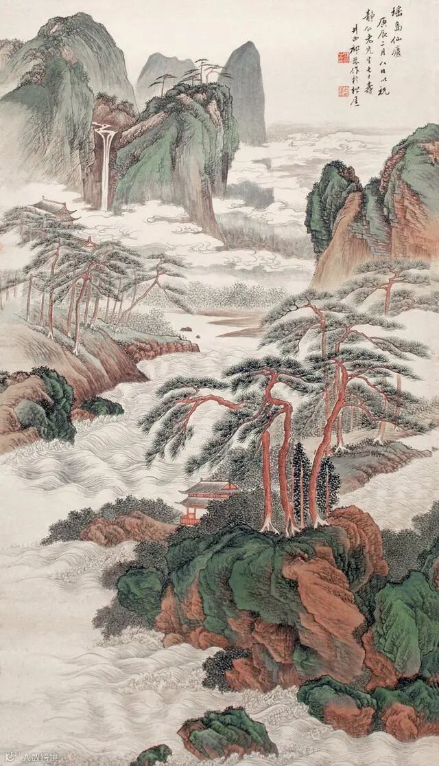 近现代 祈昆《瑶岛仙居图》