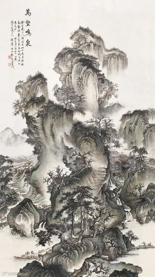 近现代 祈昆《万壑鸣泉图》